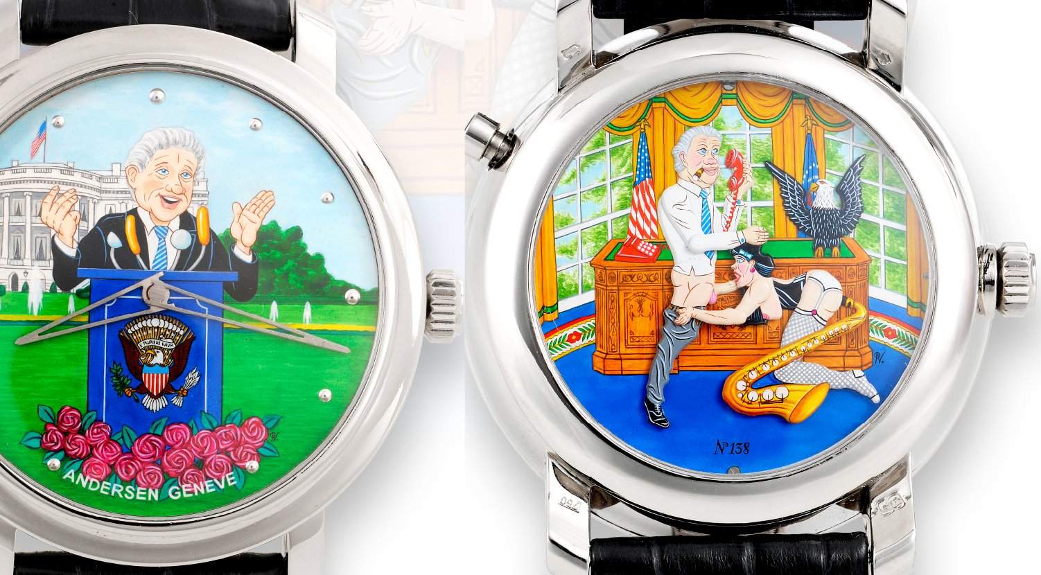 Chaque client peut donc choisir ce qu'il veut comme scène animée par un mécanisme à son poignet. Des plus anonymes à des évocations d'épisodes plus célèbres. «J'ai réalisé pour un client un duo Bill Clinton & Monica Lewinsky. Mais ce genre de travail doit rester discret», glisse le créateur.